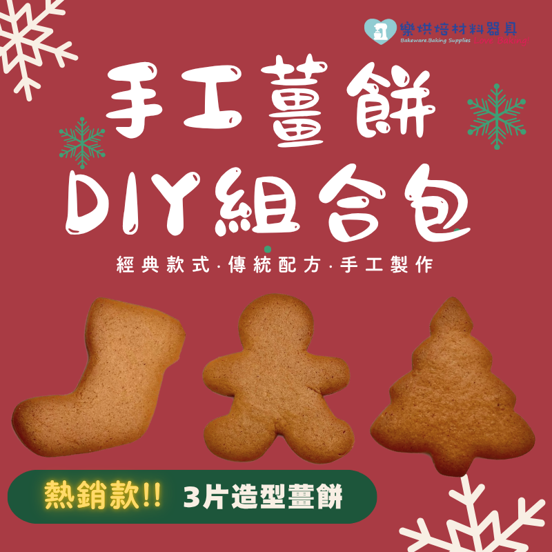 樂烘焙聖誕經典造型薑餅3+1DIY組合包 (8cm經典造型×3+白色糖霜×1)